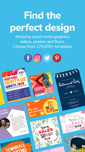 ★ภาพที่น่าดึงดูด: ให้การออกแบบของคุณบอกว่ามันทั้งหมดโดยใช้ภาพและวิดีโอภาพเต็มรูปแบบของเราเลือกจากห้องสมุดภาพถ่ายสต็อกและวิดีโอพรีเมี่ยมของเรา-หรืออัปโหลดของคุณเองเพื่อรวมไว้ในโปสเตอร์และโพสต์โซเชียลมีเดียของคุณ
