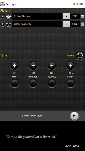 เปิดแอพฟรี Blitz Chess Clock บนสมาร์ทโฟนของคุณและเตรียมพร้อมที่จะกำหนดเวลาที่ต้องการสำหรับเกมของคุณ (ชั่วโมงนาทีวินาทีและ โบนัส)