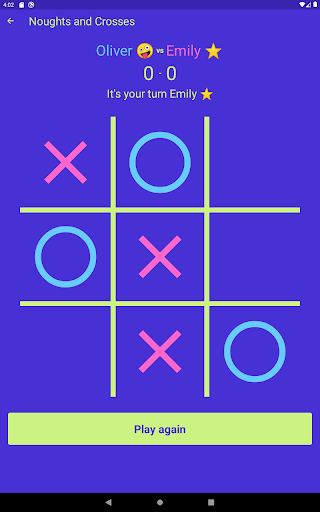 Noughts and Crosses หรือที่รู้จักกันในชื่อ Tic-Tac-toe, 3 ในแถวหรือ xs and os เป็นเกมปากกาและกระดาษคลาสสิกสำหรับผู้เล่นสองคน ผู้เล่นคนหนึ่งมักจะเป็น x และอีก O. ผู้เล่นผลัดกันทำเครื่องหมายช่องว่างในตาราง 3x3 ผู้เล่นที่ประสบความสำเร็จในการวางเครื่องหมายสามเครื่องหมายในแนวนอนแนวตั้งหรือแนวทแยงเป็นผู้ชนะ