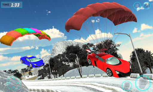 Avoid big jumps where your Parashoot may not work and your car fall down instead use mid-air ramps where available for crazy stunts. Sky Dive Parachute jump is not easy. This roof car jumping game is not a hill climbing or drift racing game.