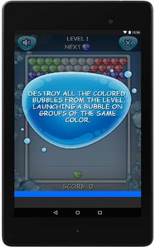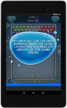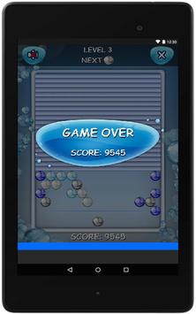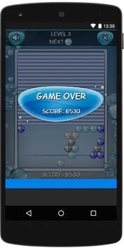 Las burbujas disparadas viajan en líneas rectas, pudiendo rebotar contra los laterales del rectángulo, y se detienen cuando tocan otra burbuja o alcanzan la parte superior del rectángulo. Si cuando una burbuja toca a otra burbuja se forma un grupo de tres o más burbujas del mismo color, dichas burbujas, así como todas las que cuelguen de ellas, son eliminadas del campo de juego, al tiempo que se reciben puntos.