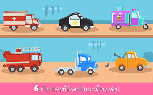 เตรียมพร้อมที่จะเล่นกับตัวละครของ Car City: ทอม, คาร์ล, แอมเบอร์, แฟรงค์, แมท และแครี่! ช่วยเพื่อนๆที่กำลังเผชิญปัญหา หรือผ่อนคลาย และหัวเราะไปกับเหล่าสัตว์ที่สนุกสนานระหว่างการเดินทาง! รถกู้ภัย พร้อมลุย!