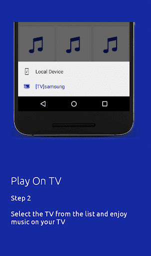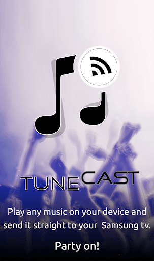 Play any music straight to your Samsung TV with TuneCast. TuneCast gives you full control over all your music files and gives you the option to stream them to any Smart TV. No need for any additional hardware, just play the songs to your tv and enjoy them on your home music system instead of your mobile speakers.