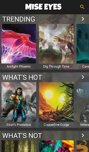 Mise eyes is your companion to Magic: the Gathering. Looking up cards has never looked better. Mise Eyes is simply the easiest way find card information. Need to find the price of a card? Try Mise Eyes. We add new features fairly frequently. And our card database is always the freshest around. Download your companion and start enjoying it now.
