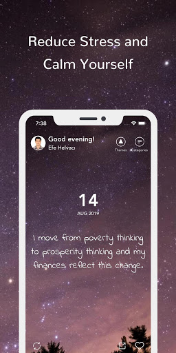 • I-personalize ang live o static na tema, mga kulay at mga font • Magrelaks at kalmado ang iyong isip sa mga tunog ng background habang binabasa ang iyong paninindigan,