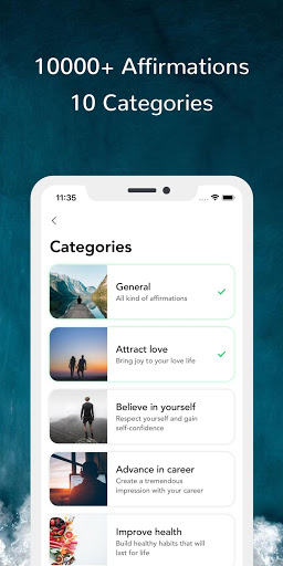 • 10000 Affirmations mula sa 8 iba't ibang mga kategorya