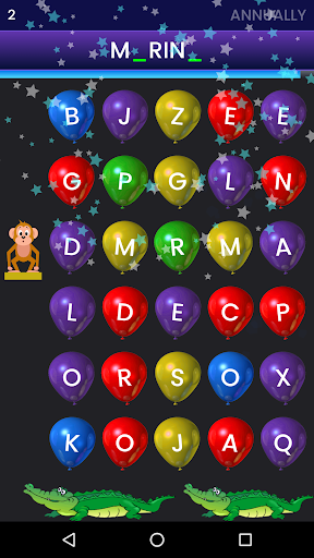 - Save Monkey: keep the Monkey safe by picking the correct character to build the incomplete word.