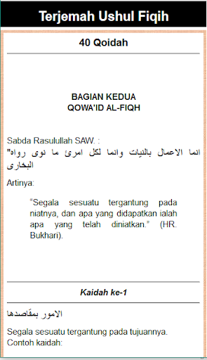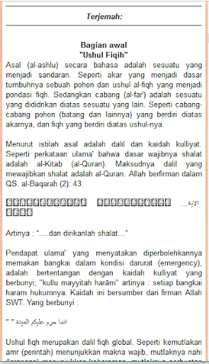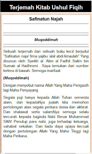 Aplikasi ini berisikan penjelasan dalam bentuk terjemah bahasa indonesia yang meliputi pembahasan terjemah kitab safinatun najah, kitab mabadi awaliyah serta 40 koidah, semoga dapat memiliki manfaat yang baik, mohon berikan kami kritik dan saran untuk dapat mengembangkan aplikasi ini melalui email kami di SuportistanStudio@gmail.com.