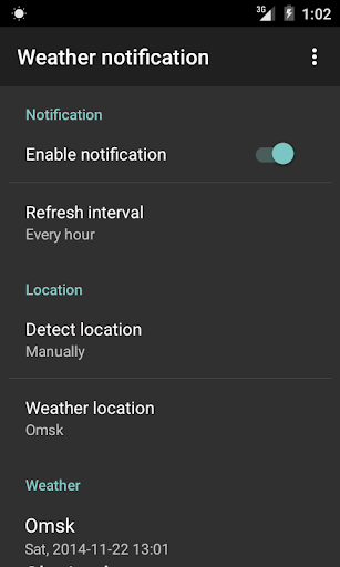 IF THE APP FAILS to update weather you, probably, need to get you own OpenWeatherMap API key. See details: https://github.com/gelin/weather-notification/wiki/FAQ