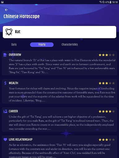 ★ Pananalapi at karera horoscope - ang mga ito ay ang dalawang pinaka basic at imperative piraso ng buhay ng tao na nakakakuha ng maraming konsiderasyon. Upang manatili ang mga gumagamit sa tamang track ang app na ito nakapaloob ang mga tuntunin ng bawat libreng pseudoscience.