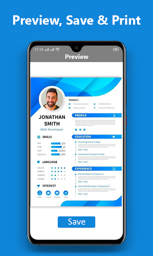 Professional CV Maker - Libreng Resume Builder app ay suporta para sa lahat ng Android mobile phone at tablet. Ang pinakamahusay na resume Creator app ay napaka-simple at user friendly na interface. Kailangan mo lamang idagdag ang lahat ng impormasyon sa pinakabagong CV Maker 2021 app na ito. Pagkatapos ng resume Builder Free app ay awtomatikong lumikha ng isang propesyonal na resume. Professional CV Maker - Libreng Resume Builder app ay mayroon ding iba't ibang mga template ng resume libre. Maaari kang pumili ng alinman sa mga ibinigay na format sa resume na libreng app na ito. I-download ang aming CV Creator na may larawan app at mag-aplay para sa lahat ng mga uri ng trabaho.