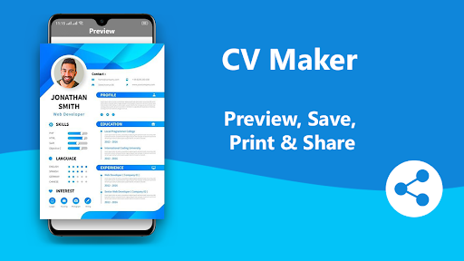 Professional CV Maker - Libreng Resume Builder app ay makakatulong sa iyo upang lumikha ng pinakamahusay na resume. Ang CV Creator Free app ay para sa mga bihasang tao, freshers at para sa lahat ng iba pang mga patlang. Ipagpatuloy ang Builder Libreng app ay sumusuporta sa iyong mga layunin sa ambisyon ng karera. Ang CV Maker app para sa Job ay sumasaklaw sa buong paglalarawan ng trabaho na naglalarawan sa iyong mga kasanayan sa pagtatrabaho. Ang CV Creator Free PDF 2021 ay espesyal na dinisenyo na may mga advanced na tampok. Professional CV Maker - Libreng Resume Builder App ay nagbibigay ng ilang mga resume template libre. Madaling Ipagpatuloy ang Creator app ay angkop para sa mga intern, freshers at para sa nakaranas ng naghahanap ng trabaho. Ang Creative CV Maker app ay tutulong sa iyo na gumawa, mag-edit, mag-print at magbahagi ng mga resume sa format ng PDF nang mabilis. Ang CV Creator Free PDF app ay magiging kapaki-pakinabang upang makagawa ng isang propesyonal na resume. Ipagpatuloy ang tagagawa na may larawan app ay lumikha ng iyong magandang resume sa ilang minuto. Propesyonal na CV Maker - Libreng Resume Builder app ay magagamit nang libre sa Android Play Store.