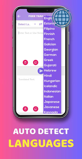 Upang i-translate ang lahat ng mga wika nang libre gamit ang iyong boses. Magsalita ka at magsalin ng mga wika agad gamit ang pinakamahusay na voice translation app na ito. Ito ay isang libreng voice translation app upang i-translate ang higit sa 100 mga wika. Maaari mong i-translate ang anumang mga wika na may ganitong kahanga-hangang at pinakamahusay na voice app Translation.
