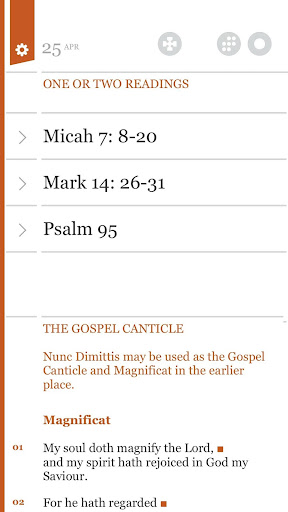 · Kumpletuhin ang mga pagbabasa ng lectionary para sa bawat araw ng taon ng iglesia, kabilang ang mga sipi ng Bibliya (pagsasalin ng NRSV)