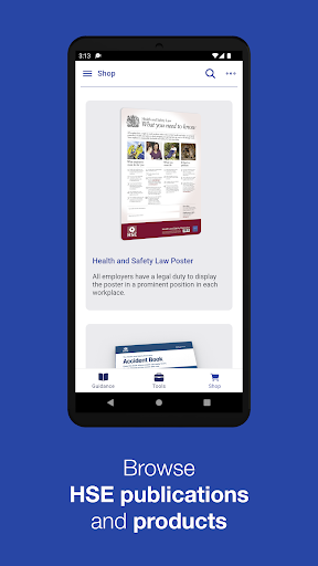 • Key ng mga seksyon ng produkto - Madaling mag-browse at pagbili Ang poster ng batas sa kalusugan at kaligtasan, aklat ng aksidente o pamamahala para sa publikasyon ng kalusugan at kaligtasan (HSG65)