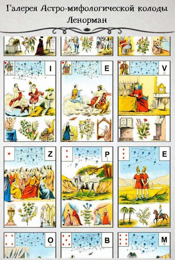 Ang pangunahing katangian ng online na panghuhula na ito - Ang paggamit ng Astro-Mythological Deck ng mga baraha na binubuo ng Maria Lenorman
