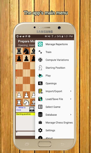 Ang app na ito ay maaari ring magamit upang tamasahin lamang ang na naglalaro ng chess laban sa chess engine na may 100 antas ng lakas ng paglalaro upang tumugma sa iyong sariling lakas o maglaro sa iyong kaibigan sa parehong aparato. Maaari mo ring itakda ang iyong sariling pagbubukas repertoire bilang pagbubukas ng libro kapag naglalaro kasama ang engine.