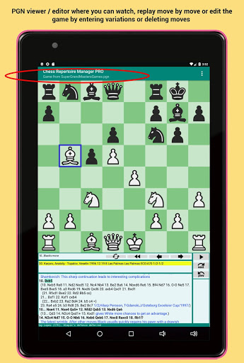 ♞ Pinakamahusay para sa pagrerepaso ng mga na-update na laro sa mga file ng PGN sa pamamagitan ng integrated PGN viewer / editor.