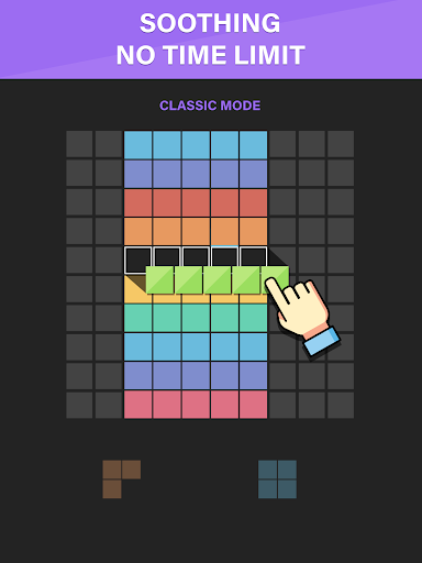 Ang board game ay nakatakda sa 10x10 grid, ang kailangan mo lang gawin sa mga bloke ay hawak lamang at ilipat ito upang lumikha at sirain ang buong linya sa screen, sa parehong patayo at pahalang, at itigil ang mga kamangha-manghang block tile mula sa pagpuno ng screen.