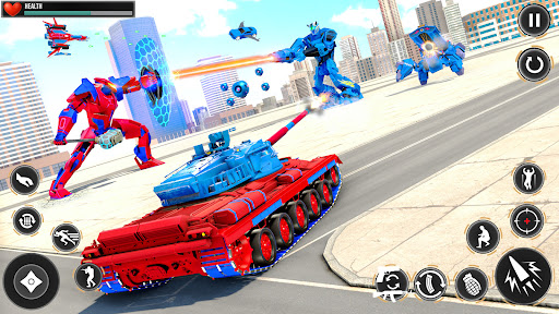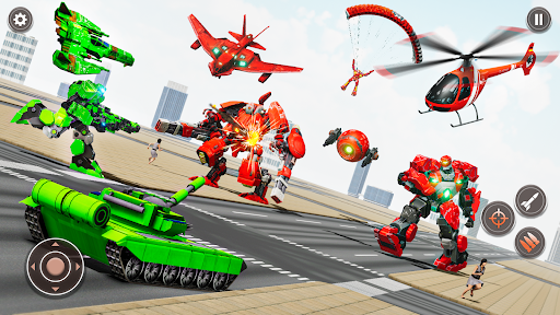 Sa modernong panahon, ang Back Street Studio ay nagtatanghal ng isang grand robot war upang sirain ang mga robot ng kaaway at i-clear ang lungsod sa paglipad ng mga laro ng kotse. Ipasok sa robot shooting game na may Robot Hero: tangke ng mga laro ng robot na karanasan at sirain ang karibal na mga robot. Ipakita ang iyong mga kapangyarihan bayani ng robot sa robot ibahin ang anyo ng labanan: lumilipad helicopter shooting games at manalo ito lumilipad kotse robot laro: Tank machine labanan. Baguhin ang iyong robot sa gunship helicopter at tangke ng robot upang magawa ang mga misyon na propesyonal bilang isang master sa tangke ng mga laro ng robot. Ang kapanapanabik na aksyon at kahanga-hanga na interface ng mga laro ng tangke ng robot ay gagawing nasasabik ang mga gumagamit sa mga paparating na yugto. Simulan ang robot digmaan at hikayatin ang iyong sarili sa pamamagitan ng paglusob sa mga kaaway sa Ultimate Robot Fight: Lumilipad kotse robot laro sa pamamagitan ng paggamit ng mga espesyal na kapangyarihan tulad ng paglipad, sipa, suntok, pagbaril at misayl atake. Ang isang mahusay na pakikipagsapalaran ng mega robot ibahin ang labanan: Grand robot tangke ng laro kung saan mo magamit ang iba't ibang mga armas tulad ng baril at robot pistols upang maalis ang mga opponents sa loob ng limitasyon ng oras sa jet robot laro. Maging handa upang tangkilikin ang tangke ng robot Transform Battle: Helicopter robot na nagbabago ng mga laro sa modernong robot digmaan upang lumikha ng bagong kasaysayan.