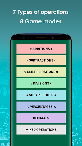⭐ 8 mga mode ng laro: matuto upang multiply at hatiin, karagdagan at pagbabawas laro, decimals, porsyento, malutas square root o lahat ng mixed up