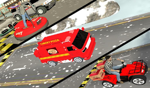 Ang paghahatid ng pizza ay isang serbisyo kung saan ang isang pizzeria o pizza boy ay naghahatid ng pizza sa isang customer. Ang pag-order ng pizza para sa paghahatid ay karaniwang nagsasangkot ng pakikipag-ugnay sa isang lokal na pizza restaurant o chain sa pamamagitan ng telepono o online. Ngunit sa taglamig snow ay sa lahat ng dako kaya maghatid ng pizza sa pizza paghahatid bike o ATV bike pizza paghahatid at futuristic bumper car.So maghanda upang maging pizza paghahatid boy at drive multi pizza paghahatid ng kotse tulad ng ATV quad bike, pizza van at bumper kotse o bike.