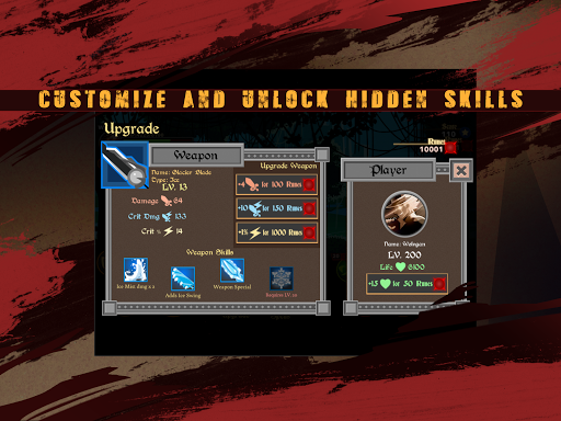 Rush upang patayin monsters at makakuha ng karanasan na nagbibigay-daan sa iyo upang antas up! Sa bawat oras na iyong antas ng kapangyarihan up, dagdagan mo ang iyong buhay at makakuha ng mga bagong spells! Maaaring mag-upgrade ang bawat antas ng parehong pinsala sa spell at pinsala sa armas. Maaari mong i-unlock ang mga bagong kasanayan sa talim ng talim na nakakakuha ka ng mas epektibong pag-atake at ultimate na gumagalaw!