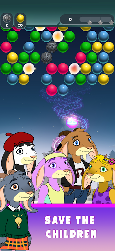 ★ Lumutang ang iyong paraan sa pamamagitan ng mapa, tulungan ang kambing na ina at maging isang mahusay na tagabaril ng bubble sa pakikipagsapalaran!
