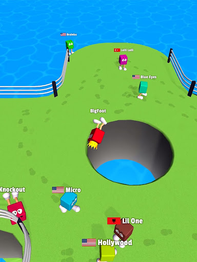 Kick Fall guys down ang mga butas at off ang arena sa iyong malaking paa.