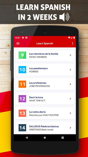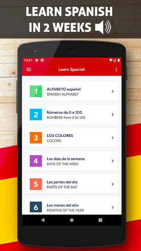 Ang aming app Learn Espanyol Libreng Offline detalyadong may maraming impormasyon tungkol sa pagbigkas, grammar, bokabularyo at isama ang alpabeto, numero, buhay sa kolehiyo, Mga tagubilin sa silid-aralan, na nagsasabi ng oras, ordinal, kulay, araw, buwan, panahon at panahon, paggawa ng mga simpleng kahilingan at pang-araw-araw na buhay. Maaari kang tumuon sa mga indibidwal na paksa o pumunta sa pamamagitan ng mga ito nang isa-isa bilang isang serye, libreng offline na kurso sa Espanyol.