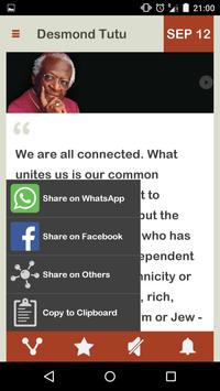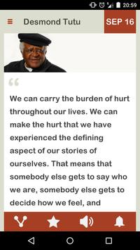 Desmond Tutu Daily brings the wisdom of Desmond to you in a form of Mobile App, wake up every day, with Desmond Tutu's words of wisdom, starting today.