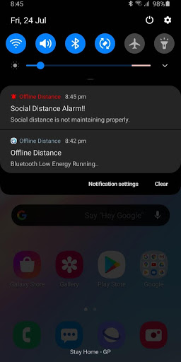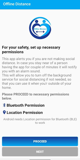 Ang offline na distansya ay isang social distancing app na nag-alerto sa iyo kung hindi ka gumagawa ng socil distance.Kung sakaling manatili ka malapit sa isang tao na "pagkakaroon ng parehong app" para sa ilang minuto ito ay alarma sa iyo ng beep tunog at panginginig ng boses.Ang app na ito ay magbibigay-daan sa iyo upang ganap na kontrolin ang serbisyo, na nangangahulugan na maaari mong i-off ito kapag hindi kinakailangan tulad ng: kapag ikaw ay manatili sa pag-asa at hindi kailangan upang mapanatili ang socil na distancing maaari mong i-off ito.