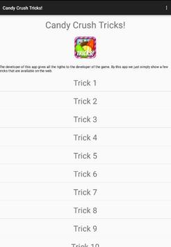 With this app you will get lots of tricks and tips for Candy Crush! The developer of this app gives all the rigths to the developer of the game. By this app we just simply show a few tricks that are available on the web.