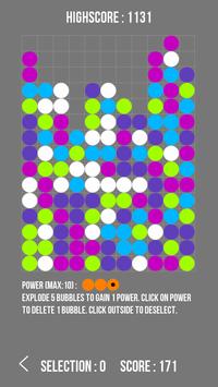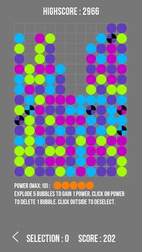 Jeu simple consistant à éclater des bulles. Choisis 2 ou plusieurs bulles adjacentes de même couleur et éclate-les. Plus tu éclates de bulles en un seul clic et plus tu récoltes de points par bulle.