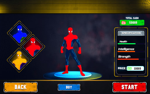 Ang interface ay ang pangunahing tampok sa bawat laro ng pagkilos ng 3D. Ang interface ng laro ay user-friendly at madaling gamitin sa isang mataas na kalidad na 3D animated graphic na disenyo. Maaari mong pakiramdam ang virtual katotohanan VR in-game. Madali mong i-play ang laro ng spider rope kung saan ang iyong misyon ay simple, kailangan mong i-save ang iyong kasintahan na inagaw ng mga kidnappers. Maaari kang lumipad at i-ugoy gamit ang Spider Rope upang mahuli ang kotse at labanan ang kidnapper. Kapag pinatakbo mo ang laro piliin ang lungsod at patakbuhin ang laro maaari mong madaling kontrolin ang iyong super lubid bayani gamit ang mga daliri. Matapos makumpleto ang iyong hamon, maaari kang makakuha ng mga barya na maaaring magamit sa pagbili ng iba't ibang mga item.