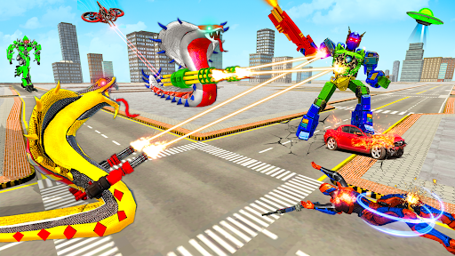 sa iba't ibang mga hugis tulad ng shooting car at cobra snake. Ang iyong layunin ay upang linisin ang lungsod mula sa iba't ibang mga kaaway. Para sa mga ito, galugarin ang lungsod upang maghanap ng mga kaaway ng kalye at makipaglaban sa kanila sa pamamagitan ng maingat na pagbabago sa kotse o ahas. Mayroon kang iba't ibang mga misayl at mga kapangyarihan ng baril upang gamitin at talunin ang mga kriminal sa pamamagitan ng paglalaro ng laro ng pagbabagong-anyo ng robot ng ahas.