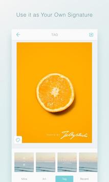 İyi bir avantaj elde etmenin bir başka yolu Filigranlarımın özelliği, kendi el yazınızı bir fotoğraf imzasına sokmaktır. Boş bir kağıt seçin, adınızı yazın ve el yazısının bir fotoğrafını filigranlarımla fotoğraf çekin, normal modu saklayın. İmzayı cihazınızdaki herhangi bir fotoğrafa kolayca uygulayabilirsiniz. Renk panelinde rengini değiştirebilirsiniz.