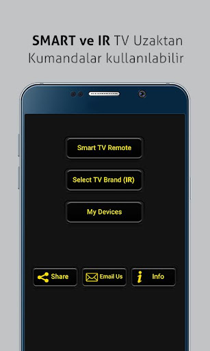 Markanız listelenmemişse veya TV uzaktan kumandası uygulaması televizyonunuzla çalışmıyorsa, lütfen bize TV marka ve uzaktan modelinizle ilgili bir e-posta gönderin. Bu uygulamayı TV markanızla uyumlu hale getirmek için çalışacağız.