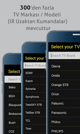 • Bu uygulama şu anda uygulamada mevcut TV markaları / modelleri ile uyumludur. Bu, bu Televizyon markaları için resmi olmayan bir TV uzaktan uygulamasıdır.