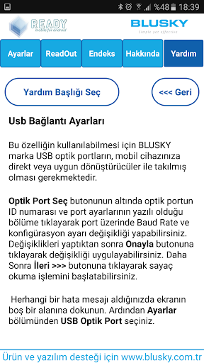 Ready Mobile for Android Free Beta mobil yazılımı, BLUSKY optik portlarını kullanabilmeniz için ücretsiz olarak dağıtılmaktadır. Yazılım, BLUSKY marka optik portları dışında farklı marka optik portlar ile çalışmayı garantilemez. Sınırsız ve sorunsuz kullanım için BLUSKY optik portlarını tercih ediniz.