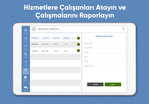 • Daha önce girilmiş müşteri bilgilerinin ad/telefon/plaka ile kayıtlı rehberden getirilmesi