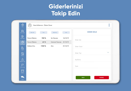 • Gelir, Gider, Kâr, Personel satış, Ödeme Türü, Ürün sayısı veya Ürün tutarına göre raporlama