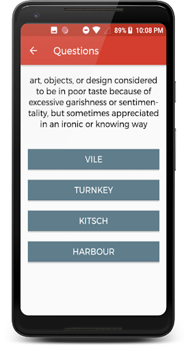 Eğitim kelime sıkıcı olabilir. Bu yüzden kelime bilgisi sınavınızı artırmak ve yeteneklerinize az miktarda kelime sınavı koymak için bir kelime bilgi yarışması ekledik. Kelime bilgi soruları her zaman kelimenin anlamıdır ve sadece doğru kelimeyi tahmin etmeniz gerekir. Kulağa kolay mı? Şimdi günün sözcüğü deneyin!