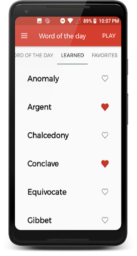 Sözümüzü keşfedin Gün bölümü ve günlük yeni kelimeler öğrenin. Geçtiğiniz ve öğrendiğiniz tüm kelimeler "Öğrenildi" bölümünüzde tutulur. Belirli bir kelimeyi seviyorsanız ve yani, onu favoriniz yapabilirsiniz ve projelerinizi kullanabilir ve projeleriniz için kullanabilirsiniz.