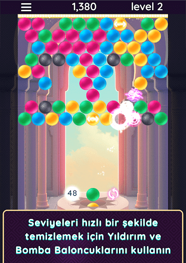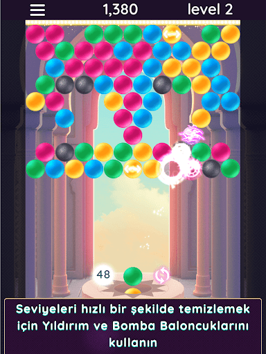 🟠 Daha eğlenceli ve stratejik oyun için yıldırım, bomba ve buz baloncukları