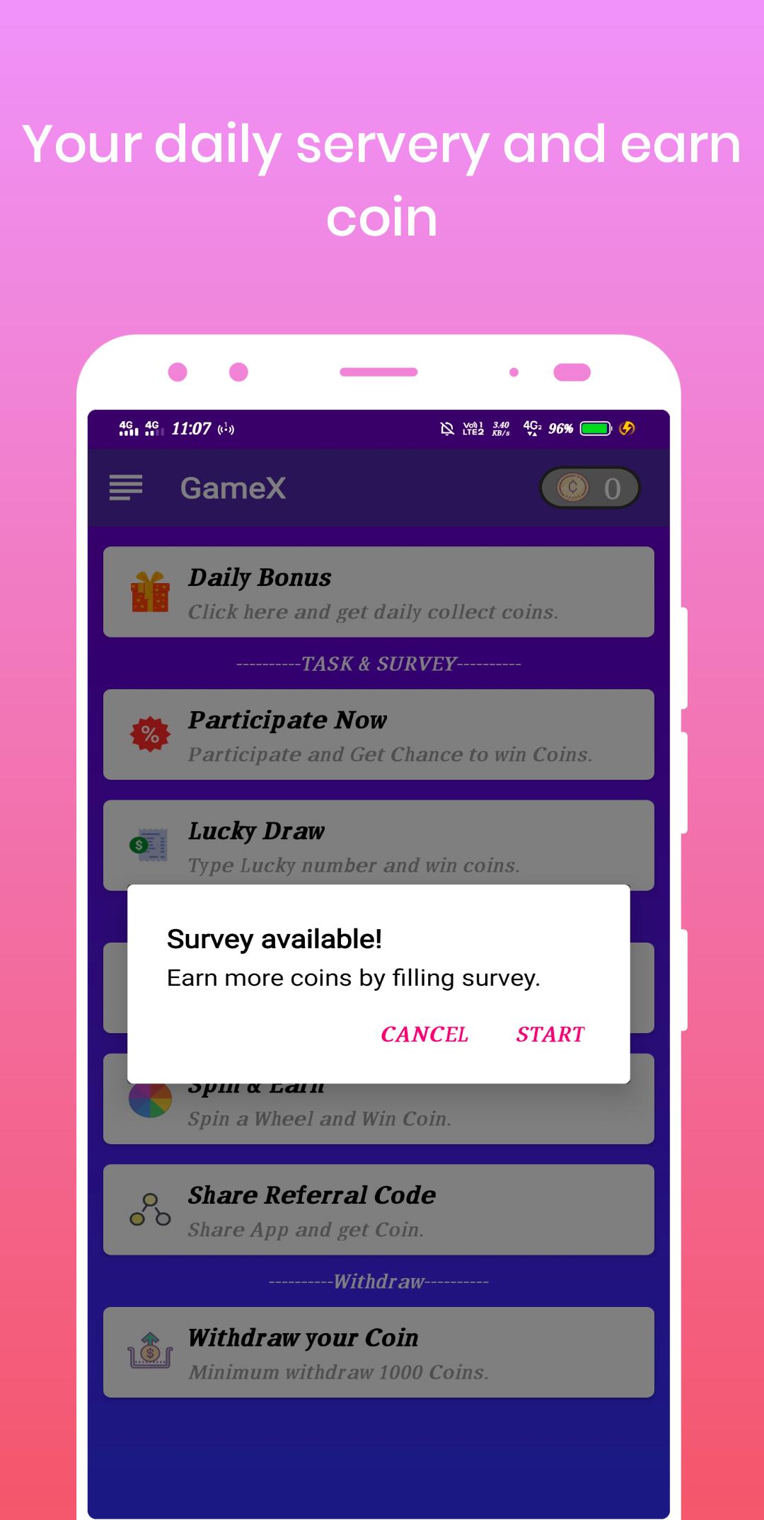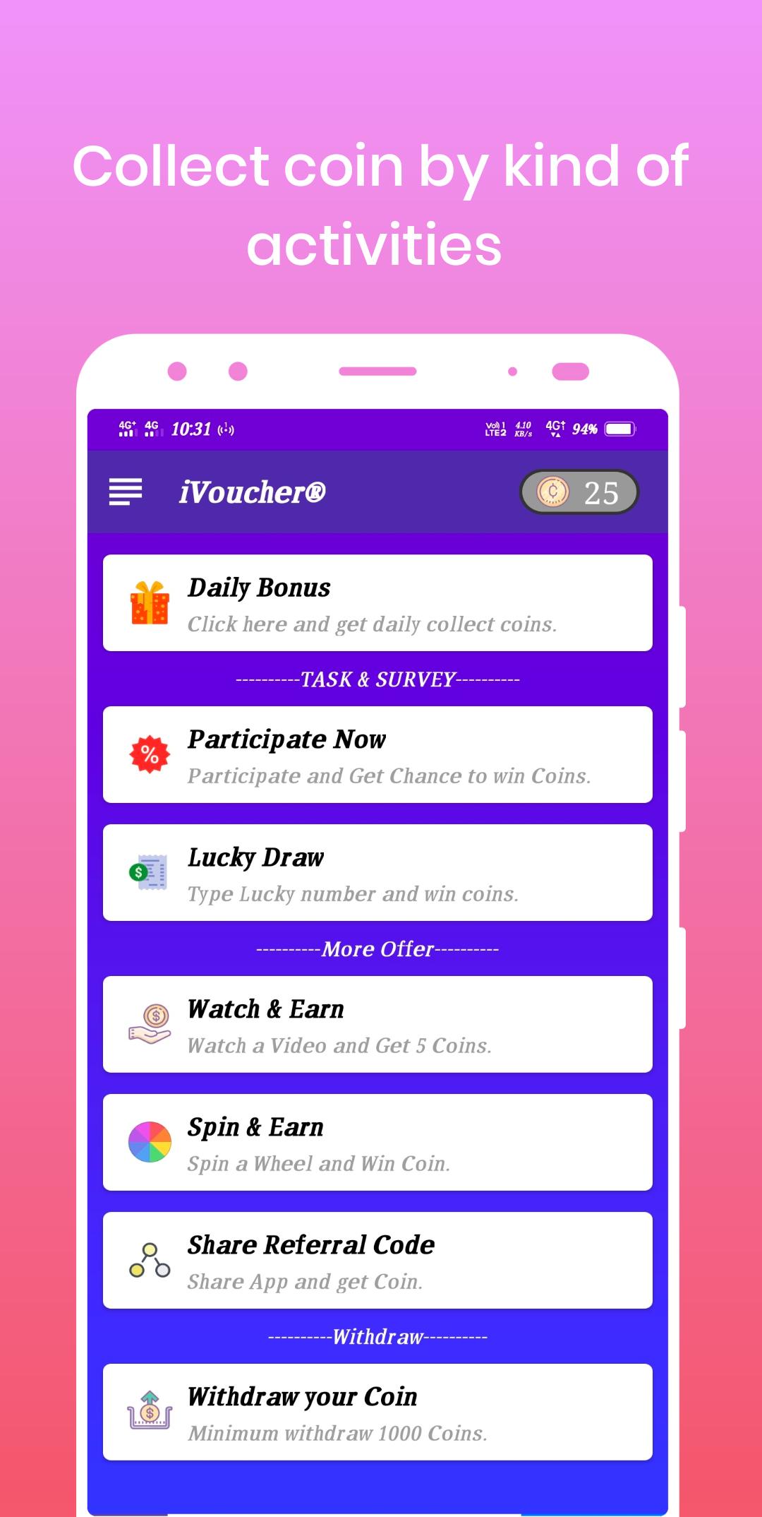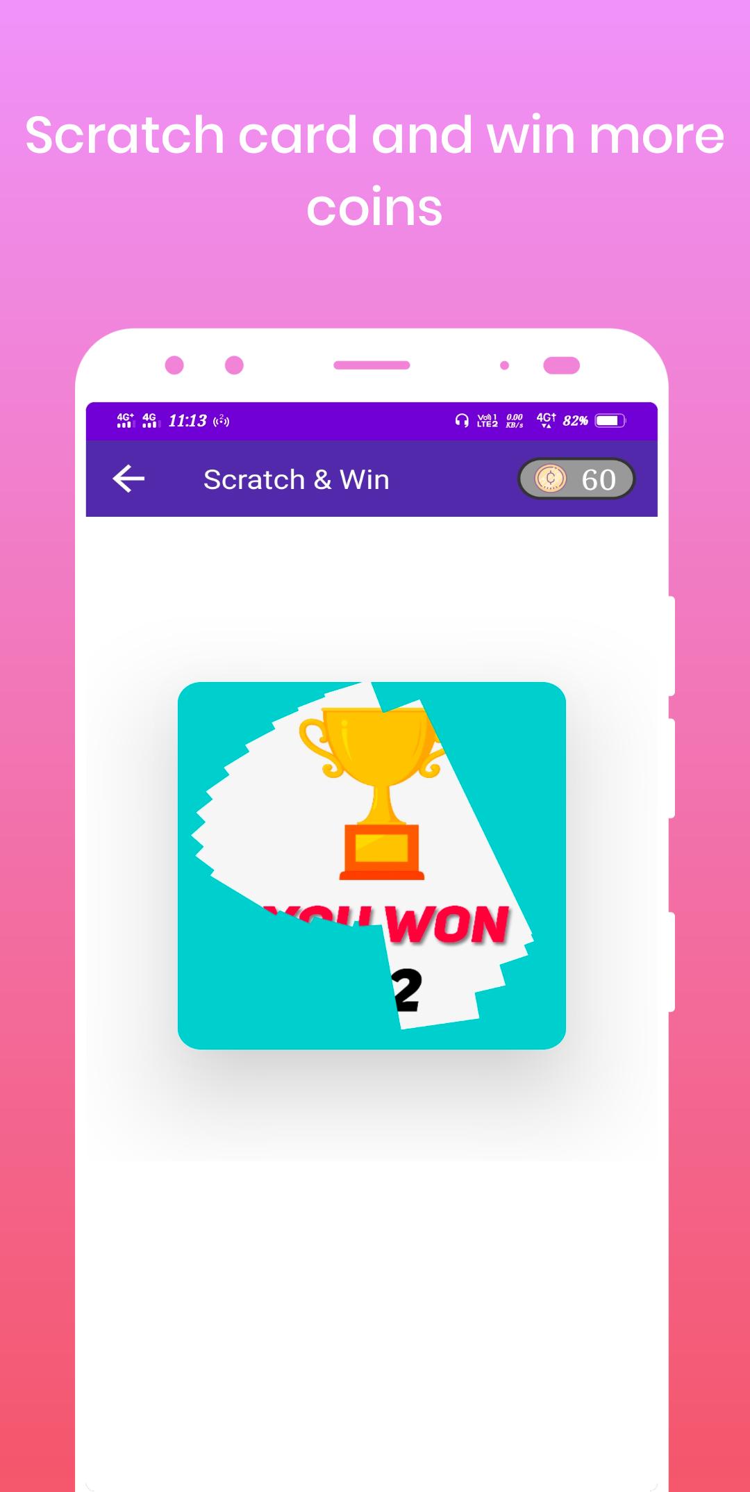 ▶ Collect coins by Daily bonus, Spin wheel, Scratch Card Lucky draw Join Contest, Participate watching videos, filling survey and completing tasks