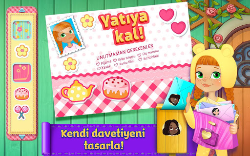 YASTIK SAVAŞI ÇILGINLIĞI! En iyi arkadaşlarına yastık fırlatarak eğlen ve çılgın eğlenceli vakit geçir! Rüyalarının uyku partisini planla! Davetiyeler süsle, kendi pijamanı tasarla, nefis krepler yap, Şeker Avı oyna ve çok daha fazlası!