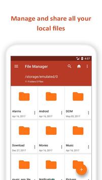 With stylish interface, File Manager lets you to handle any kind of file or folder whether they are stored in your device or microSD card. With File Manager you can easily copy, move, rename, delete, find, share, explore, compress, and otherwise organize all of your files on any of your storages. It also lets you explore and access your files by category.