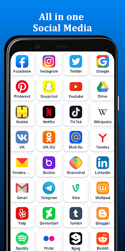 Tất cả các phương tiện truyền thông xã hội và mạng xã hội. Ứng dụng này cung cấp quyền truy cập dễ dàng vào tất cả các mạng truyền thông xã hội trong một ứng dụng Trình duyệt web giúp dễ dàng chia sẻ các ứng dụng được sử dụng gần đây nhất của bạn. Nó cho phép người dùng điện thoại thông minh truy cập nhiều mạng xã hội Ả Rập Saudi yêu thích của bạn, các tài khoản trình duyệt phương tiện truyền thông xã hội Hoa Kỳ từ một ứng dụng di động duy nhất.