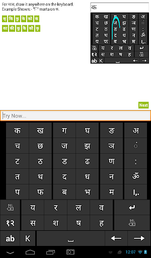 The keyboard is very simple and shows full Varnmala on the screen so there is no need to press shift to find some letters. Matra's as written by drawing anywhere on the keyboard with finger. This makes writing Hindi simpler and pleasant.